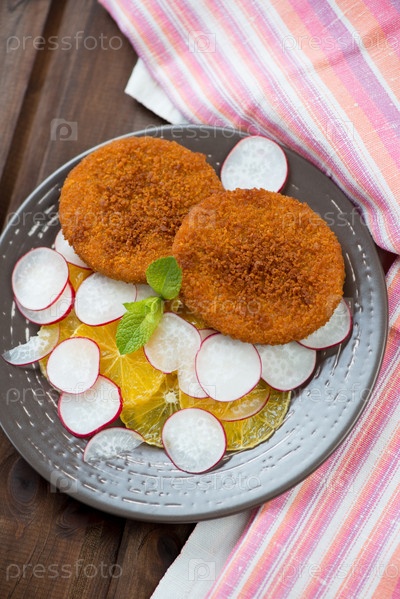 Жареные лососевые бургеры с апельсинами и редисом