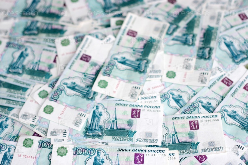 Денежные купюры достоинством в одну тысячу рублей