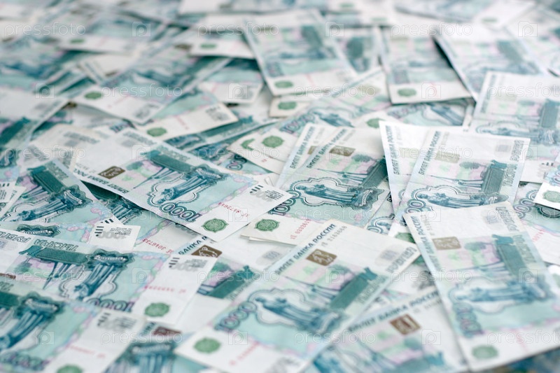 Денежные купюры достоинством в одну тысячу рублей