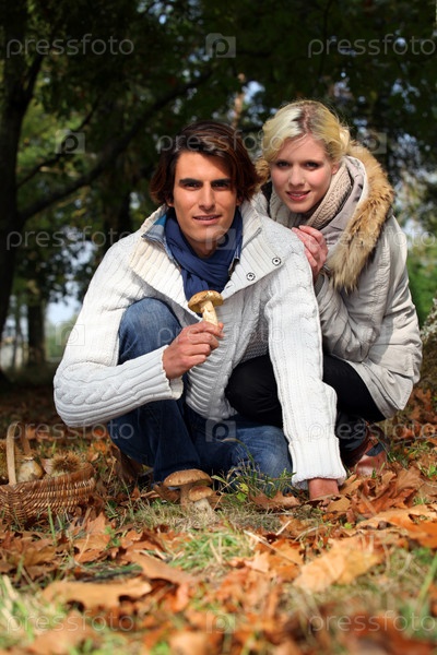 Пара собирает грибы