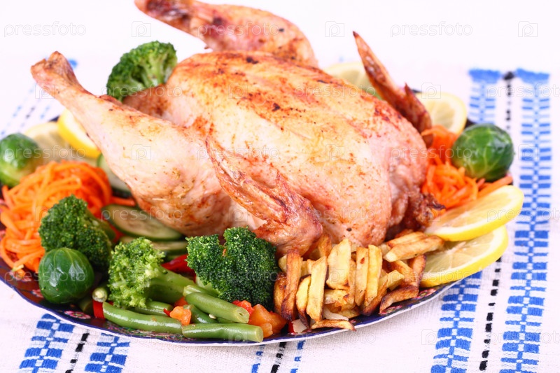 Запеченная курица с овощами