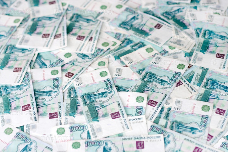 Денежные купюры достоинством в одну тысячу рублей
