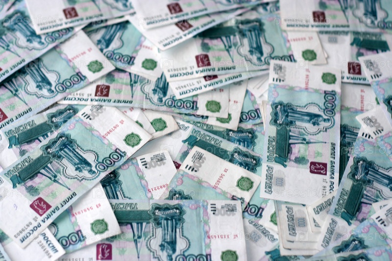 Денежные купюры достоинством в одну тысячу рублей