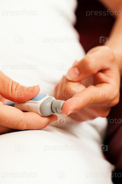 Женщина берет кровь из пальца