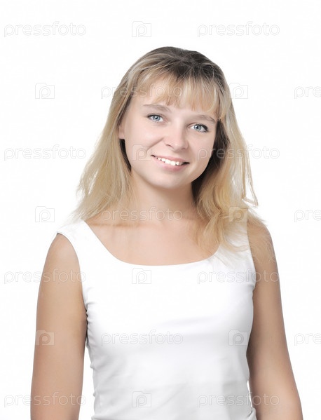 Портрет счастливой молодой женщины на белом фоне