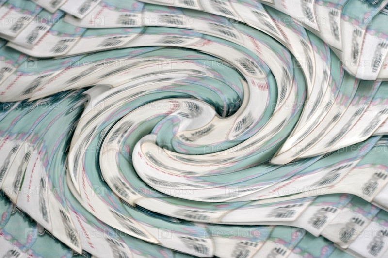 Денежные купюры достоинством в одну тысячу рублей, выложенные зигзагом