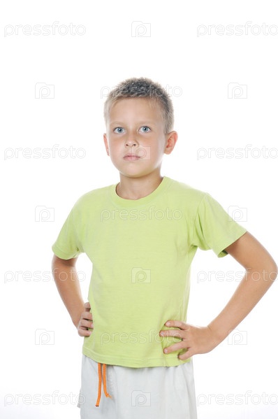 Портрет 7-летнего мальчика на белом фоне зубов
