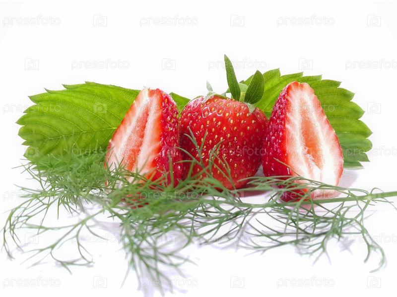 Клубника с листьями и веточкой укропа
