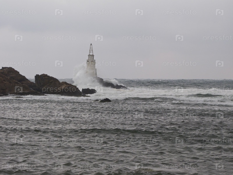 Маяк Ахтопол в штормовую погоду