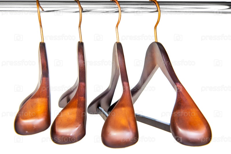 Четыре деревянные вешалки на перекладине