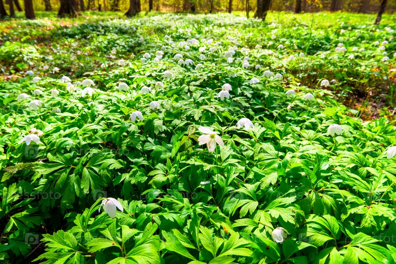 Поляна с белыми подснежниками