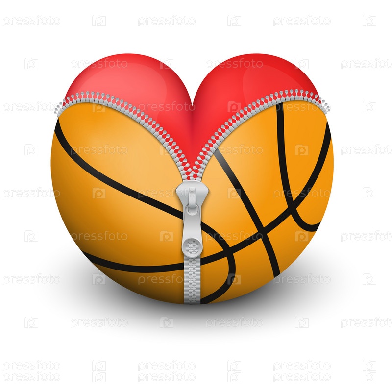 Красное сердце внутри баскетбольного мяча