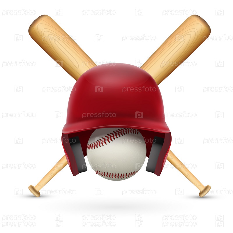 Бейсбол. Шлем, мяч и две биты