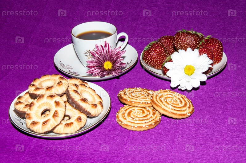 Кофе, печенье и клубника