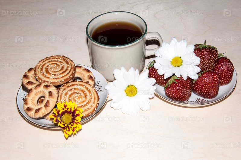 Кофе, печенье и клубника