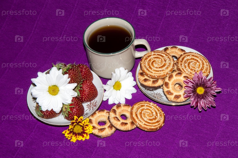 Кофе, печенье и клубника