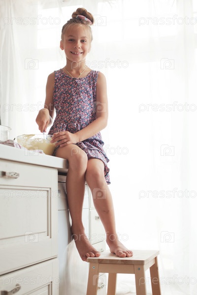 Девочка готовит на кухне