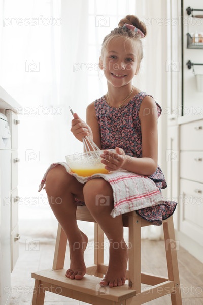 Девочка готовит на кухне
