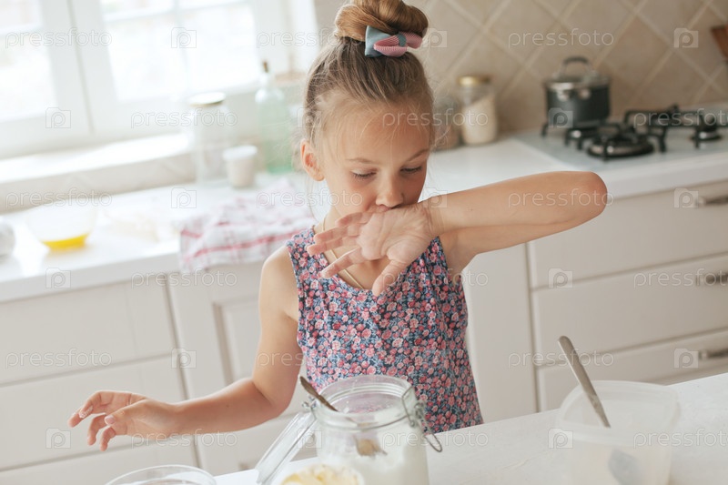 Девочка готовит на кухне