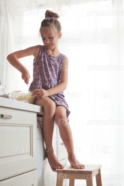 Девочка готовит на кухне