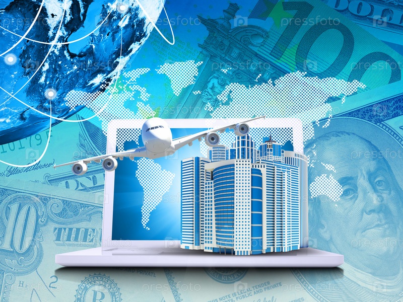 Самолет, ноутбук и Земля