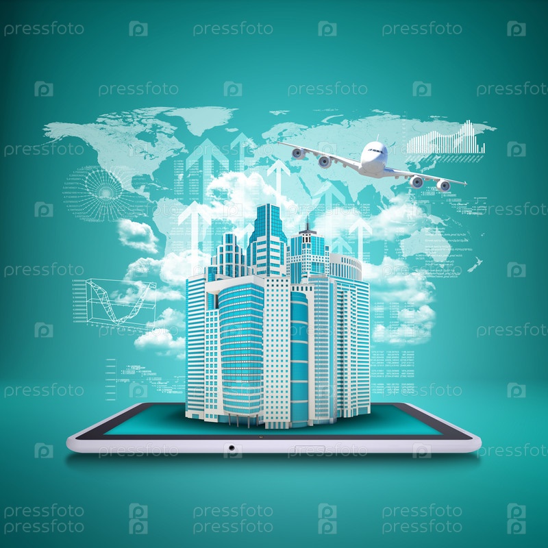 Самолет, небоскребы и карта мира