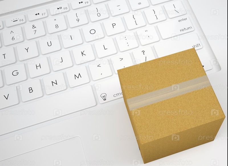 Закрытая картонная коробка на клавиатуре
