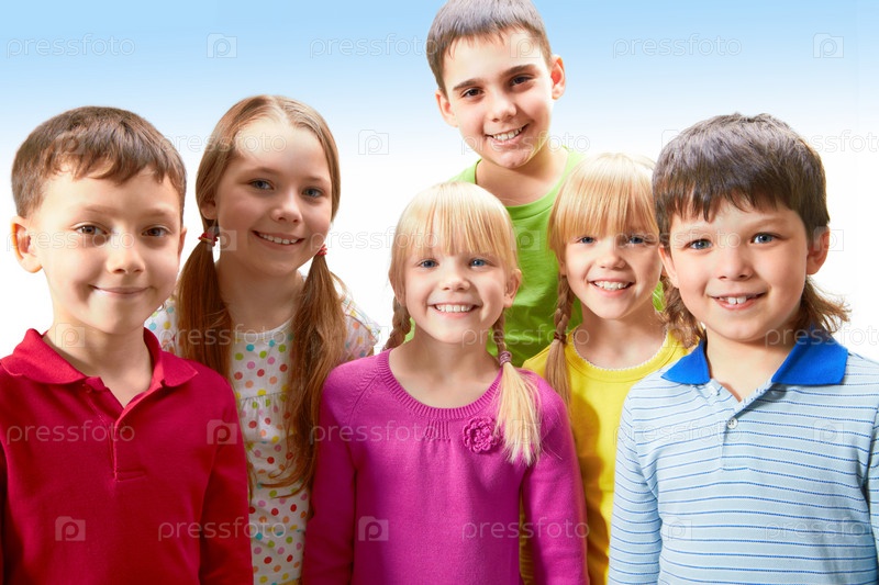 Счастливые дети на голубом фоне