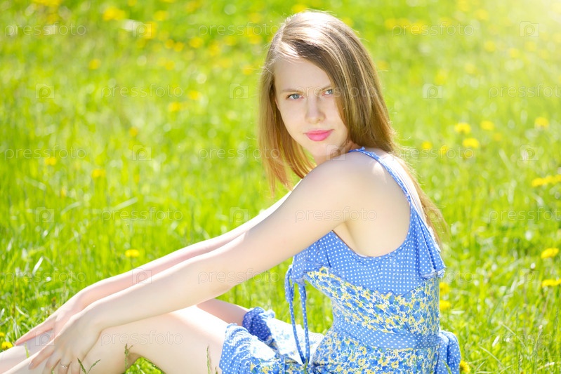 Улыбающаяся девушка на траве