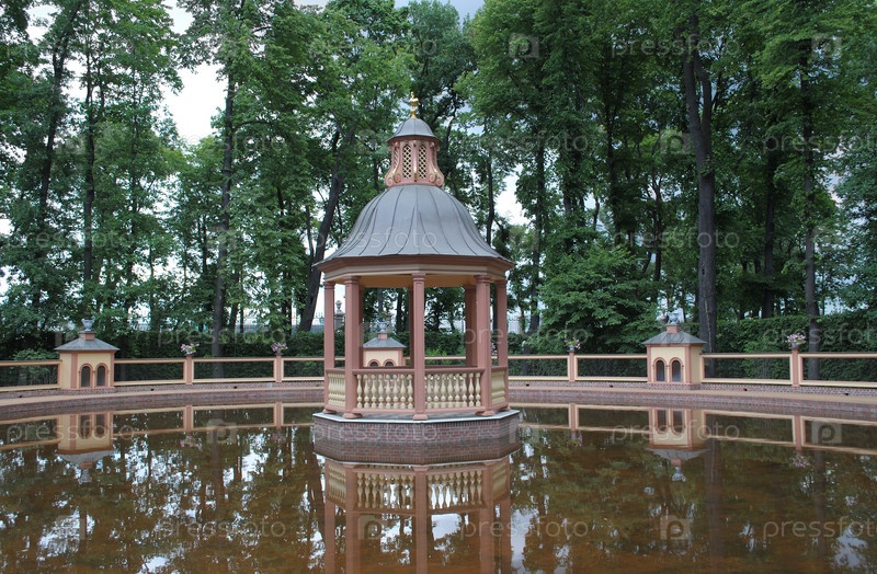 Беседка и пруд, летний сад в Санкт-Петербурге