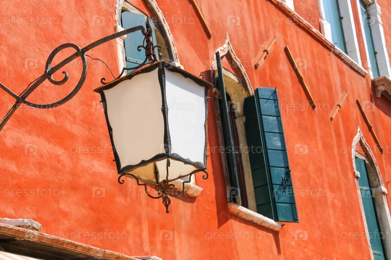 Фонарь на фасаде старого итальянского дома. Венеция