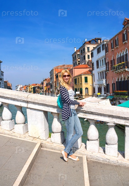 Привлекательная девушка на фоне старых домов в Венеции, Италия