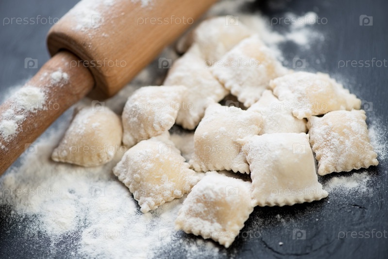 Сырые итальянские равиоли, крупный план