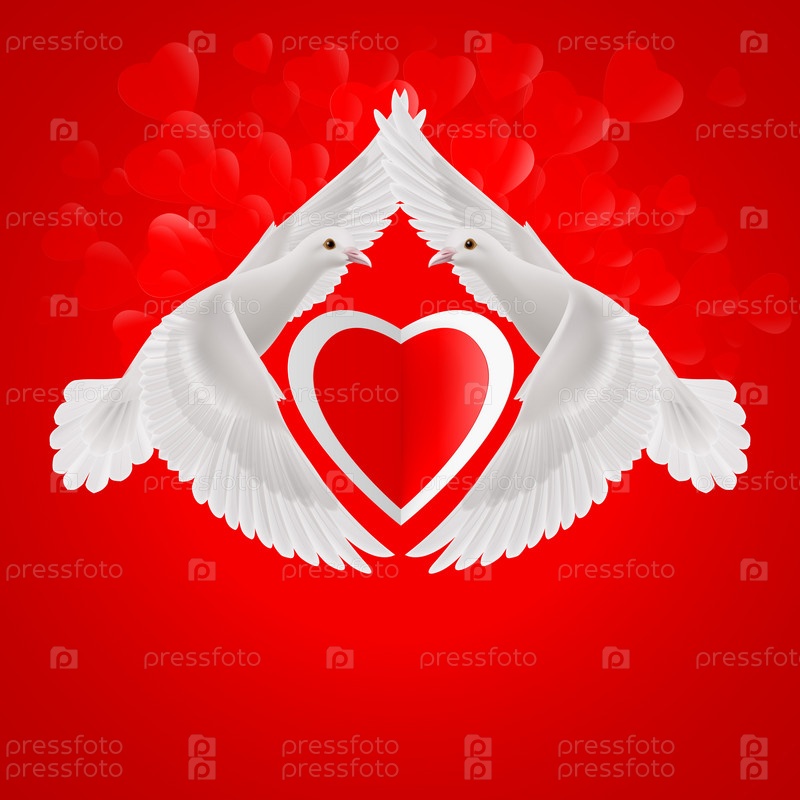 Белые голуби и сердце