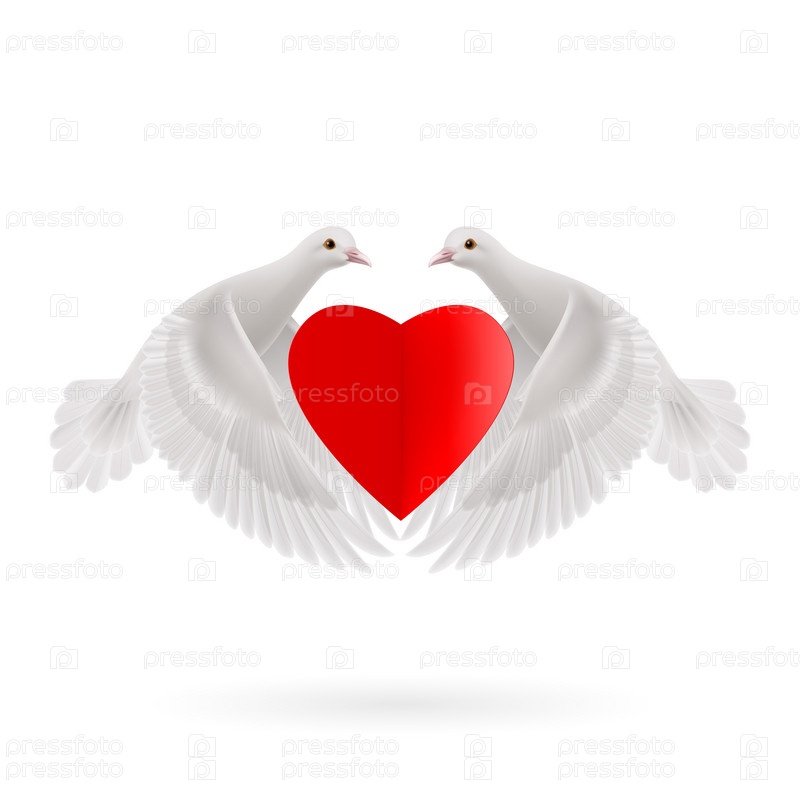 Белые голуби и сердце