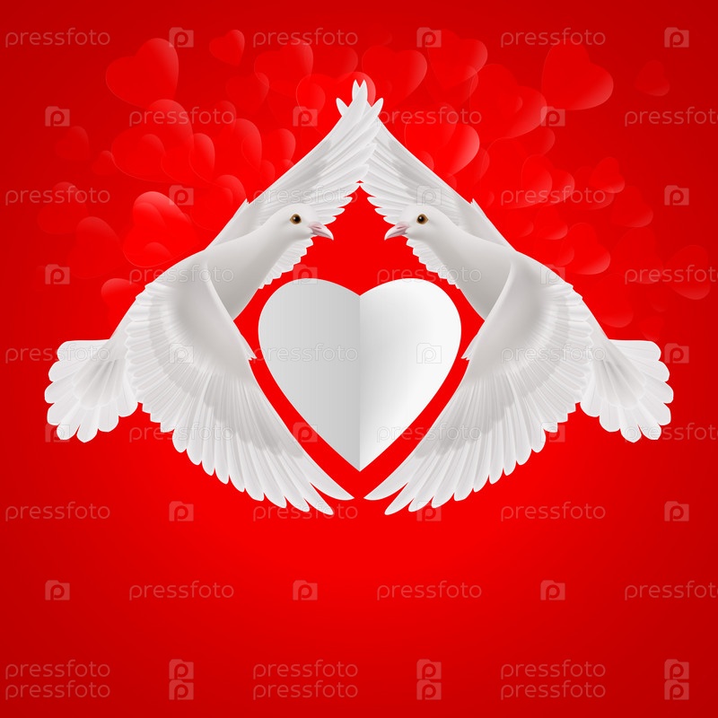 Белые голуби и сердце
