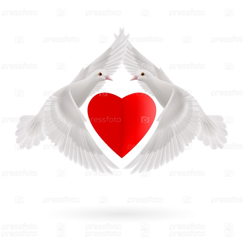 Белые голуби и сердце