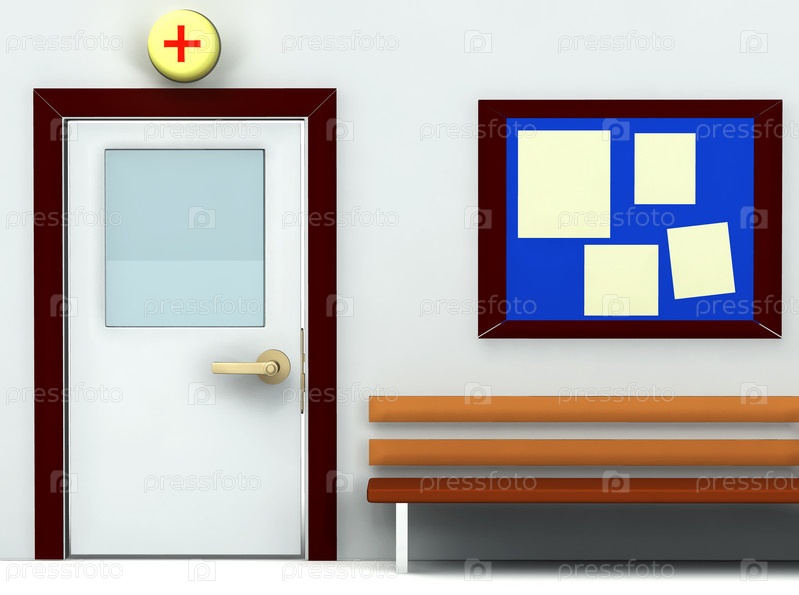 Больничный коридор и дверь в кабинет врача, 3D-мультипликация