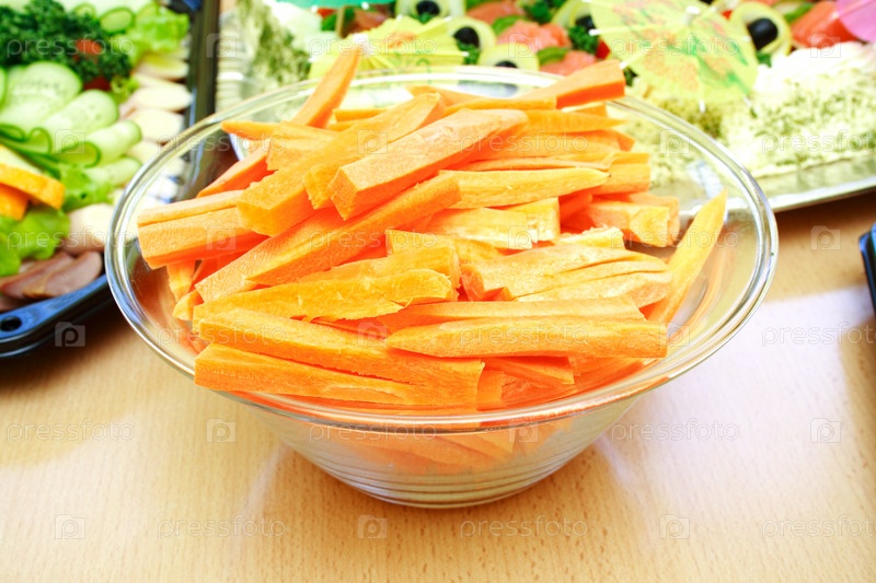 Нарезанная свежая морковь в тарелке на столе