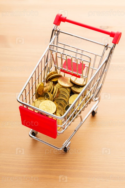 Золотые монеты в тележке