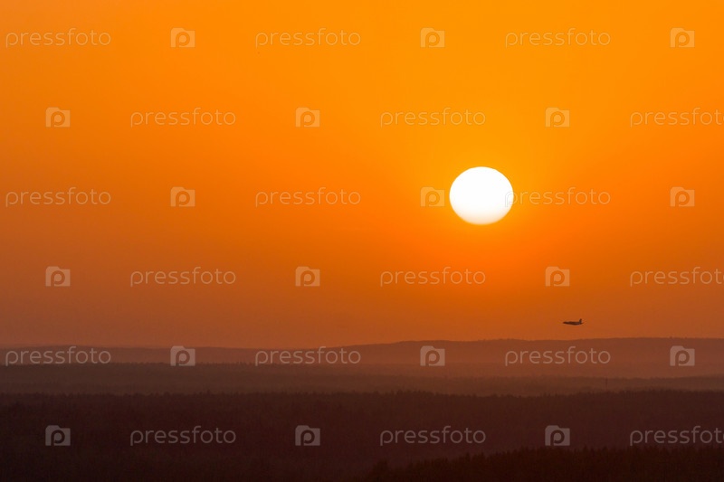 Гражданский самолет в небе на закате