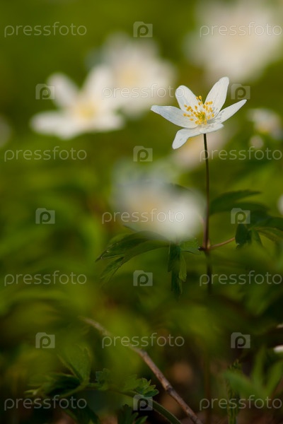 Белый первоцвет в лесу