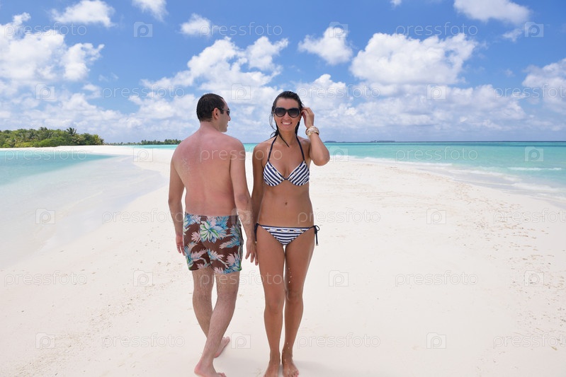 Счастливая молодая пара отдыхает на пляже