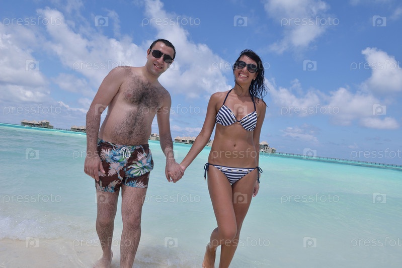 Счастливая молодая пара отдыхает на пляже