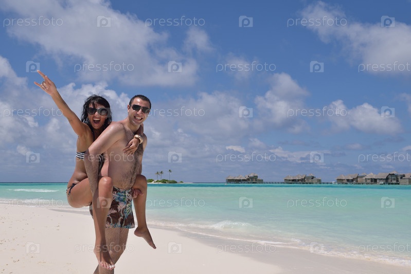 Счастливая молодая пара на пляже