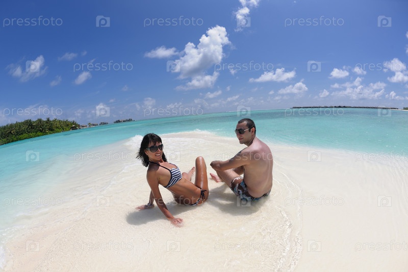 Счастливая молодая пара отдыхает на пляже