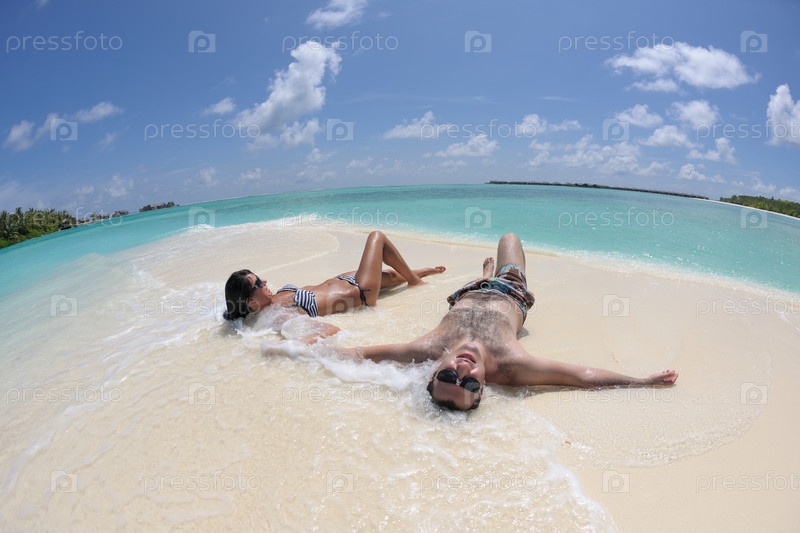 Счастливая молодая пара на пляже