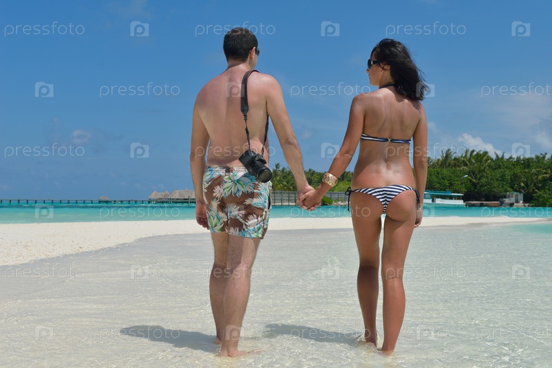 Счастливая молодая пара на пляже