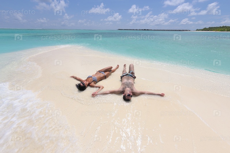 Счастливая молодая пара отдыхает на пляже