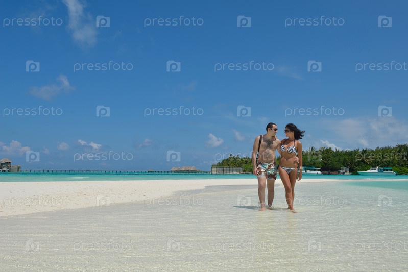 Счастливая молодая пара отдыхает на пляже